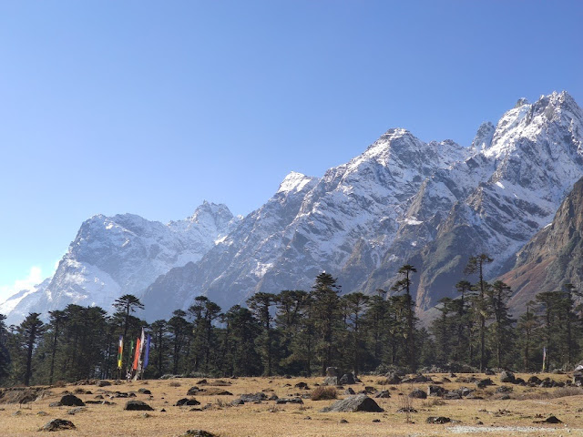 It is a nature sanctuary with river, hot springs, yaks and grazing pasture on rolling meadows surrounded by the Himalayan Mountains. It is situated at an elevation of 3,564 metres (11,693 ft) above msl. It is home to the Shingba Rhododendron Sanctuary, which has over twenty-four species of the rhododendron, the state flower. The flowering season is from late February and to mid-June when countless flowers bloom to carpet the valley in multicolored hues of rainbow. During the flowering season, the area blooms with rhododendrons, primulas, iris, poppies and other flora.